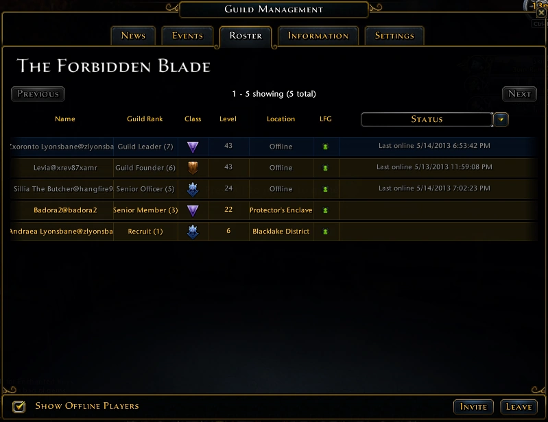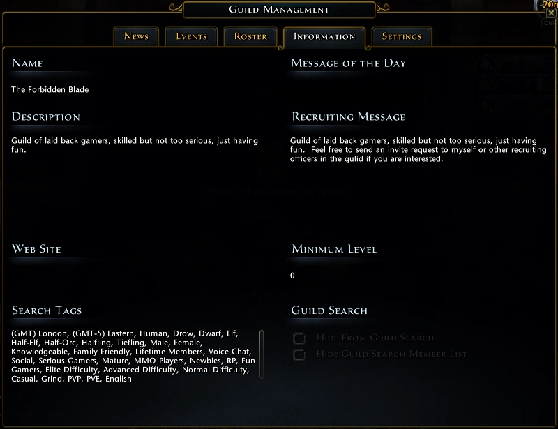 Il y a aussi un sytème de TAGS permettant aux joueurs de rechercher une guilde selon certains critères.