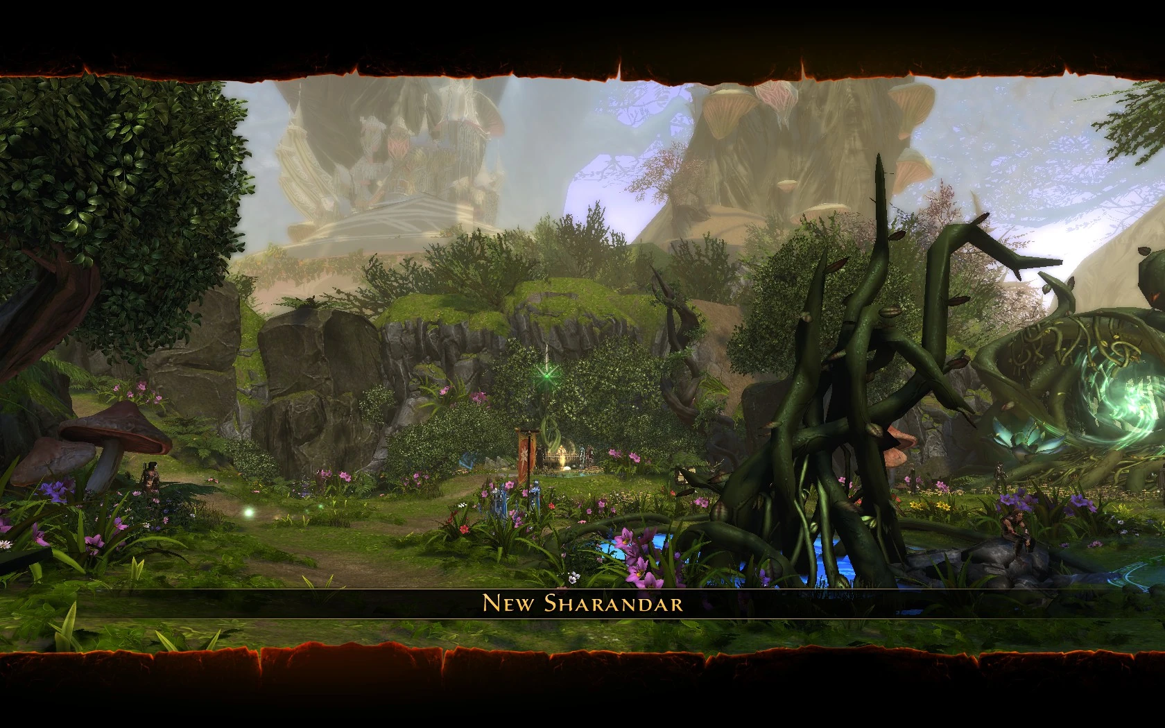 Sharandar is an adventure zone added in the Fury of the Feywild update. It is the main site of the Sharandar Campaign. Access to the region is granted as part of the quest To the Farthest Forest. Initially the characters will enter the Old Sharandar Ruins, but following a certain stage of the quest they will enter New Sharandar and from then on will move directly between it and other map regions.