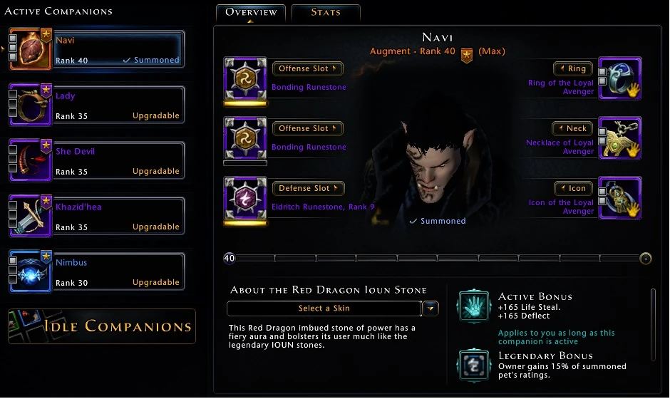 Note: We only need 1 legendary companion, that honor is for our Ioun Stone, more stats is always good. Legendary lvl doesn't increase our companion's active bonuses.